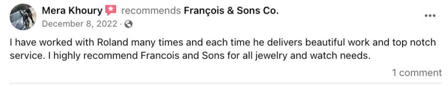 François & Sons Co. is a jewelry concierge service located in the heart of Glendora, CA.We have over 50 years providing the following services: